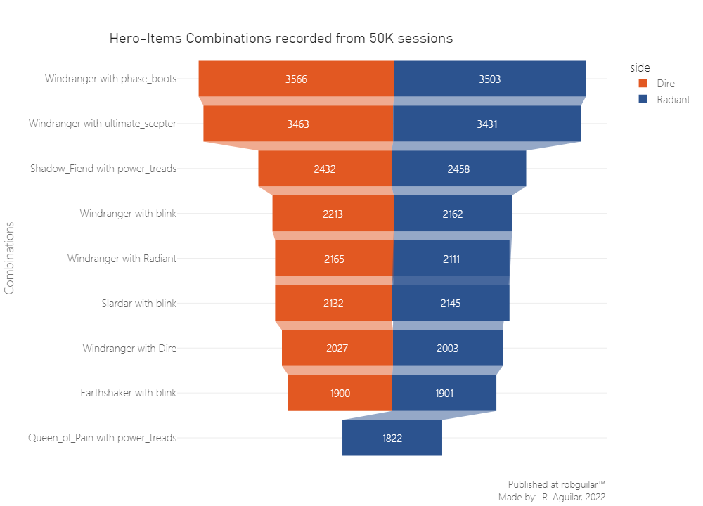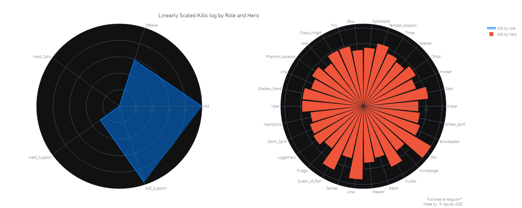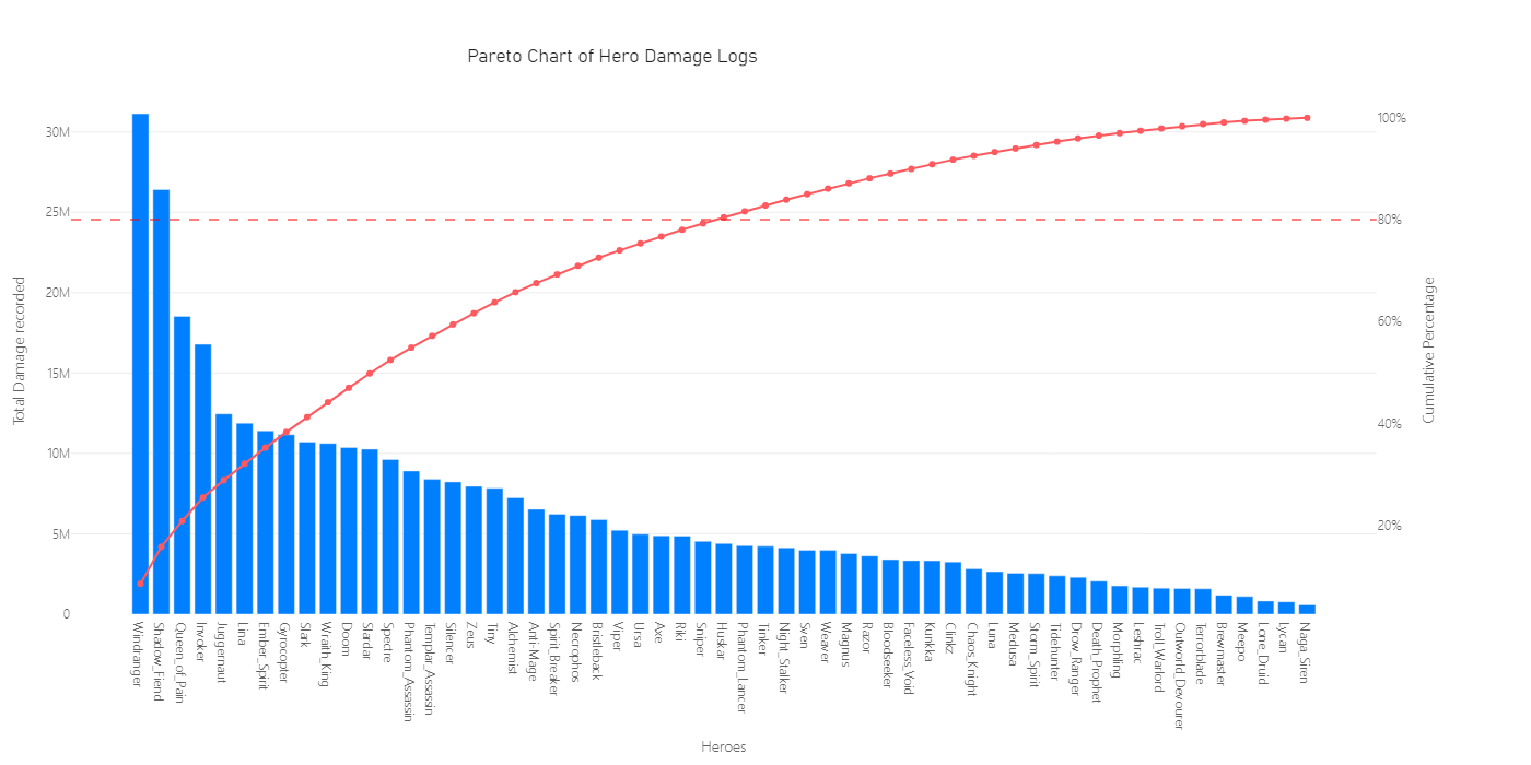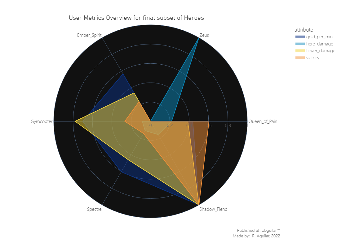 At the beginning we were looking that the most buffed heroes, in terms of kills were different heroes like Riki, Huskar, and Ursa, however, unless we start using statistical tests applied to a behavioral metric like the damage dealt to enemies, we began noticing contrasts, where some heroes were registering higher victory values like Shadow Fiend and others high damage ranges without having superiority in term of sessions succeeded. For this reason, is preferable to base the conclusion upon statistical techniques to study subjective behaviors.