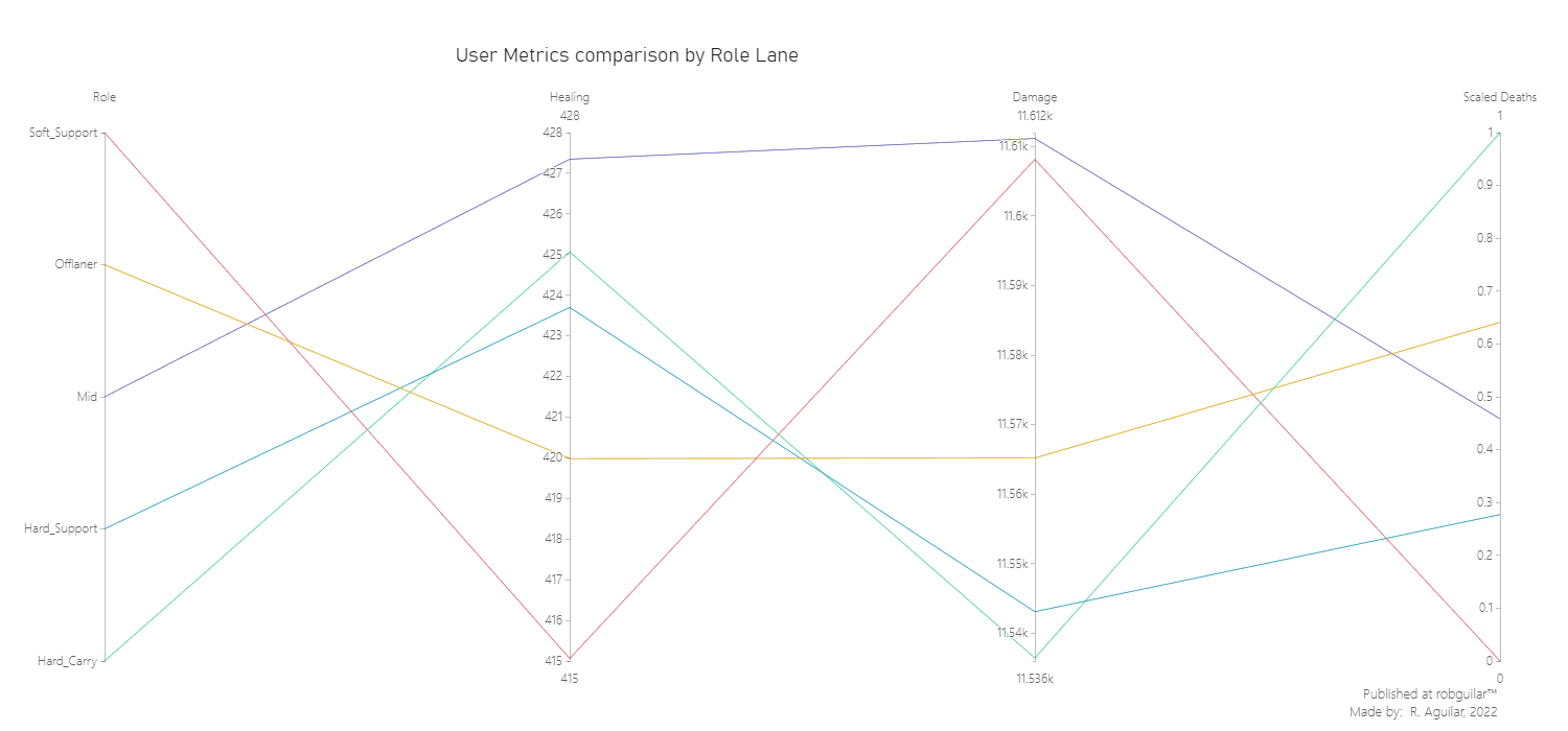 MOBA games tend to rely their sustainability on their community engagement and this can be studied by the player’s user experience. Usually, when buffed heroes are used for Jungling, which among DOTA 2 community sometimes is a frowned upon activity, this will make the users feel uncomfortable because of unfair mechanics, so the main solution is to build a Gameplay Metrics dashboard segmented by characters to track closely its behavior and take prompter actions each time a patch is released.