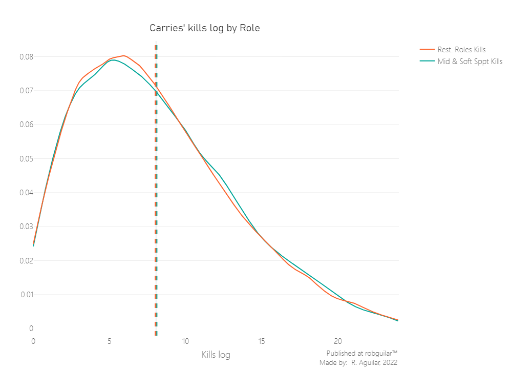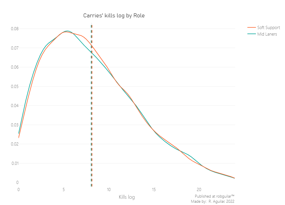 For now, the major concern of the Game Designer, should not be to take immediate action once they see this kind of insight. Instead, they can start collecting more granular data about the registries of damage logs changes, especially when abilities were introduced. Then can study two samples, one after the patch and another before, using the data archived, to run an A/B test to prove its veracity.