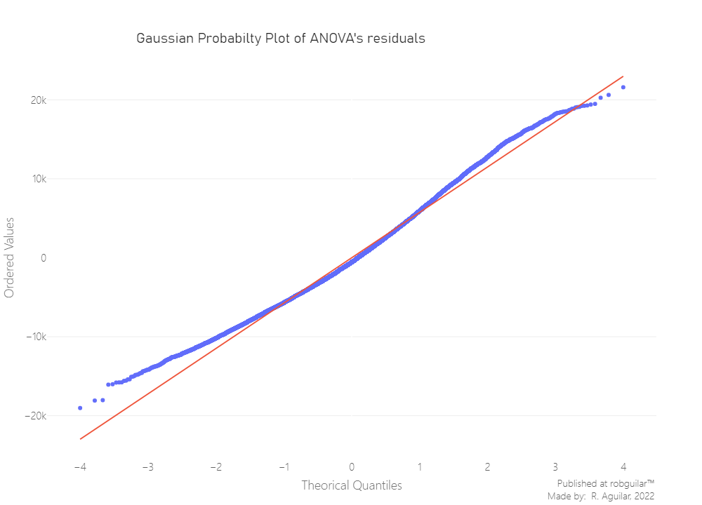 From the last image, we can see on the left side, that the distribution tends to spread, and considering that we rely on approximately 20,000 residuals, we can conclude non-normality. However, the best way to decide this is to test it.